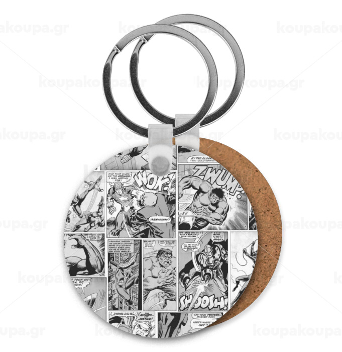 Classic comic Limited B/W, Μπρελόκ Ξύλινο στρογγυλό MDF Φ5cm