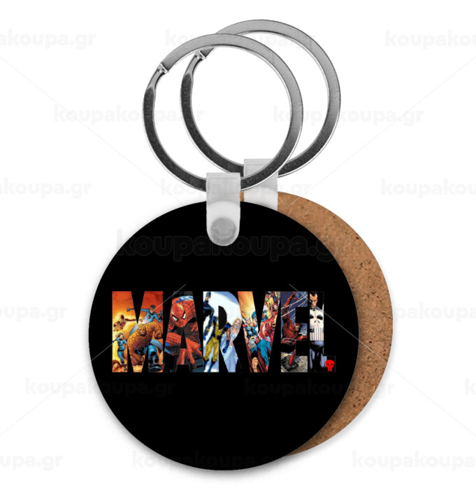 MARVEL Black, Μπρελόκ Ξύλινο στρογγυλό MDF Φ5cm