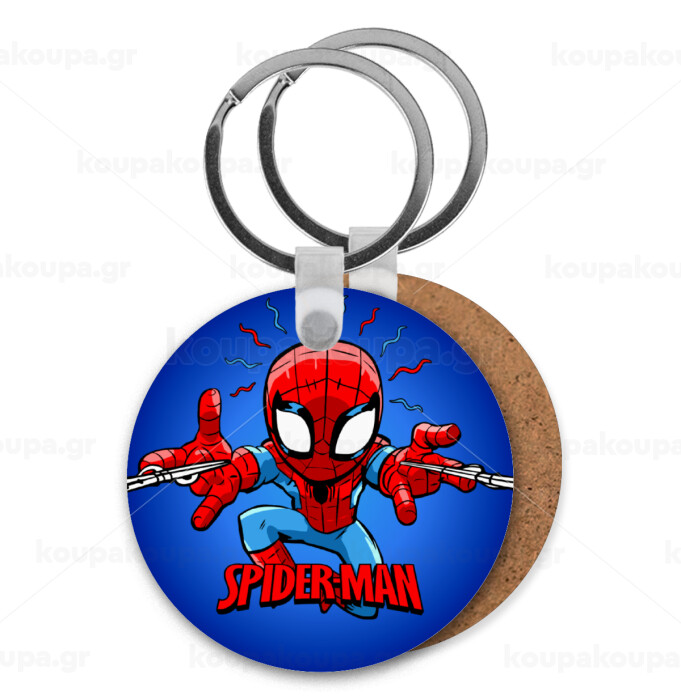 Spiderman flying, Μπρελόκ Ξύλινο στρογγυλό MDF Φ5cm