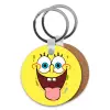 Μπομπ Σφουγγαράκης χαμόγελο, Μπρελόκ Ξύλινο στρογγυλό MDF Φ5cm