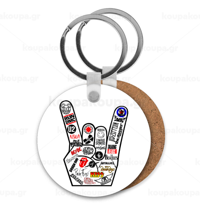 Best Rock Bands hand, Μπρελόκ Ξύλινο στρογγυλό MDF Φ5cm