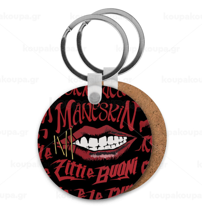 Maneskin lips, Μπρελόκ Ξύλινο στρογγυλό MDF Φ5cm