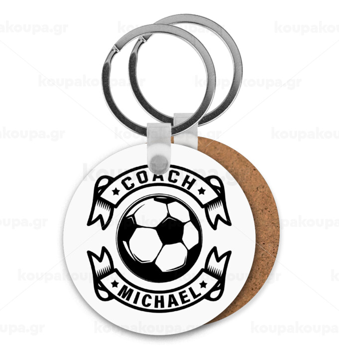 Soccer coach, Μπρελόκ Ξύλινο στρογγυλό MDF Φ5cm