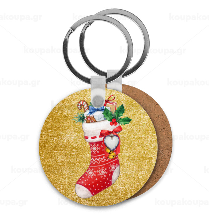 Xmas boot, Μπρελόκ Ξύλινο στρογγυλό MDF Φ5cm
