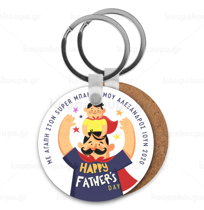 Happy Fathers Day με όνομα, Μπρελόκ Ξύλινο στρογγυλό MDF Φ5cm