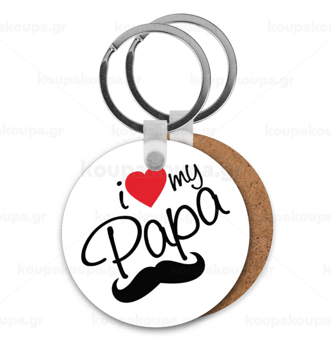 I Love my papa, Μπρελόκ Ξύλινο στρογγυλό MDF Φ5cm