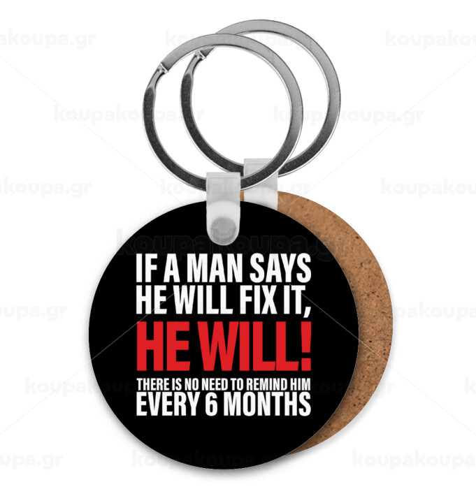 If a man says he will fix it He will There is no need to remind him every 6 months, Μπρελόκ Ξύλινο στρογγυλό MDF Φ5cm