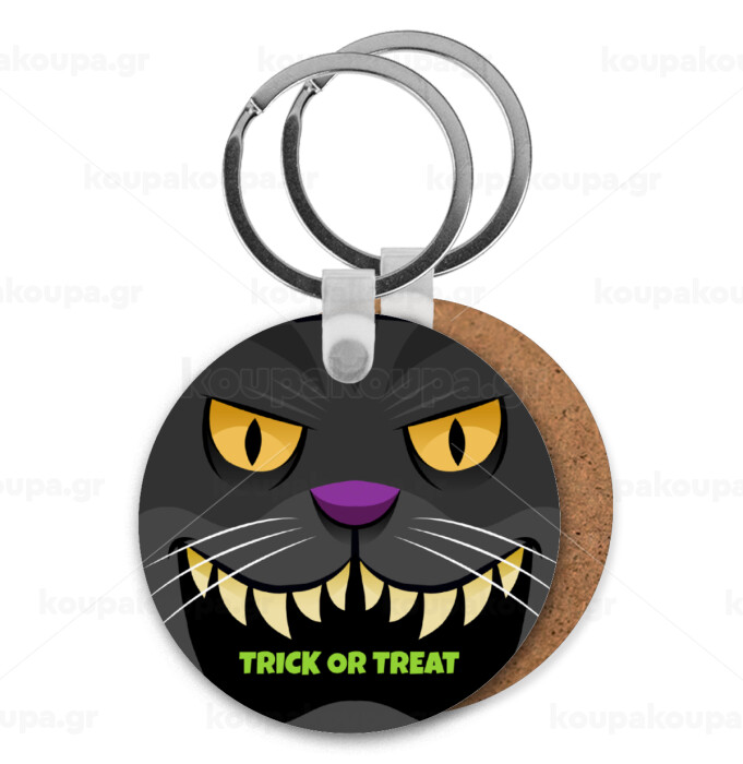 Halloween trick or treat Cat, Μπρελόκ Ξύλινο στρογγυλό MDF Φ5cm