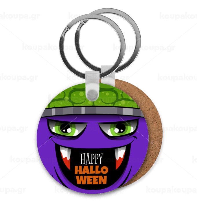 Halloween trick or treat Monster, Μπρελόκ Ξύλινο στρογγυλό MDF Φ5cm