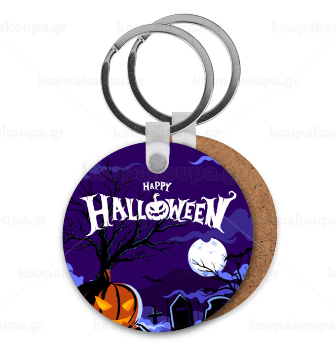 Happy Halloween cemetery, Μπρελόκ Ξύλινο στρογγυλό MDF Φ5cm