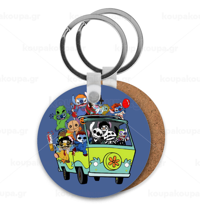 Stitch Halloween scooby car, Μπρελόκ Ξύλινο στρογγυλό MDF Φ5cm
