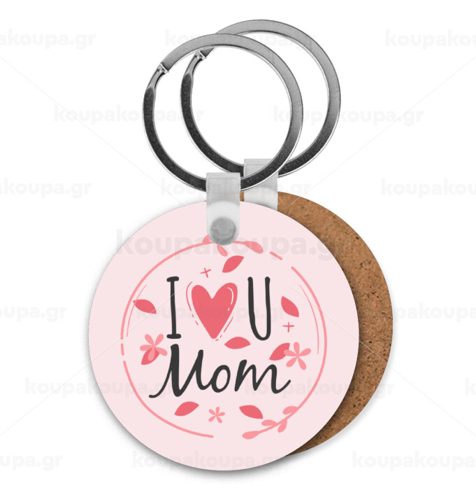 I Love you Mom pink, Μπρελόκ Ξύλινο στρογγυλό MDF Φ5cm