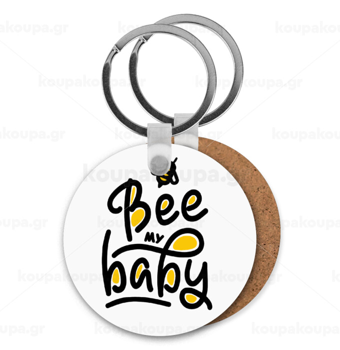 Bee my BABY!!!, Μπρελόκ Ξύλινο στρογγυλό MDF Φ5cm