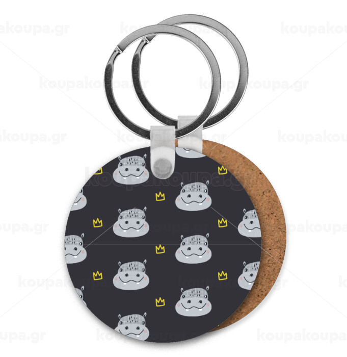 Hippo, Μπρελόκ Ξύλινο στρογγυλό MDF Φ5cm