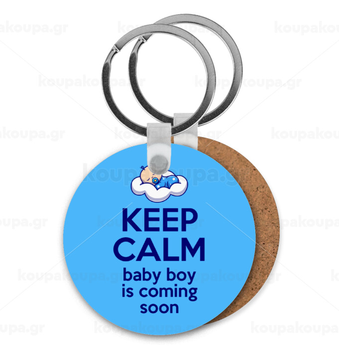 KEEP CALM baby boy is coming soon!!!, Μπρελόκ Ξύλινο στρογγυλό MDF Φ5cm