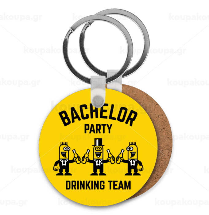 Bachelor Party Drinking Team, Μπρελόκ Ξύλινο στρογγυλό MDF Φ5cm