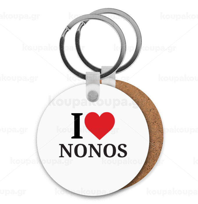 I Love ΝΟΝΟΣ, Μπρελόκ Ξύλινο στρογγυλό MDF Φ5cm