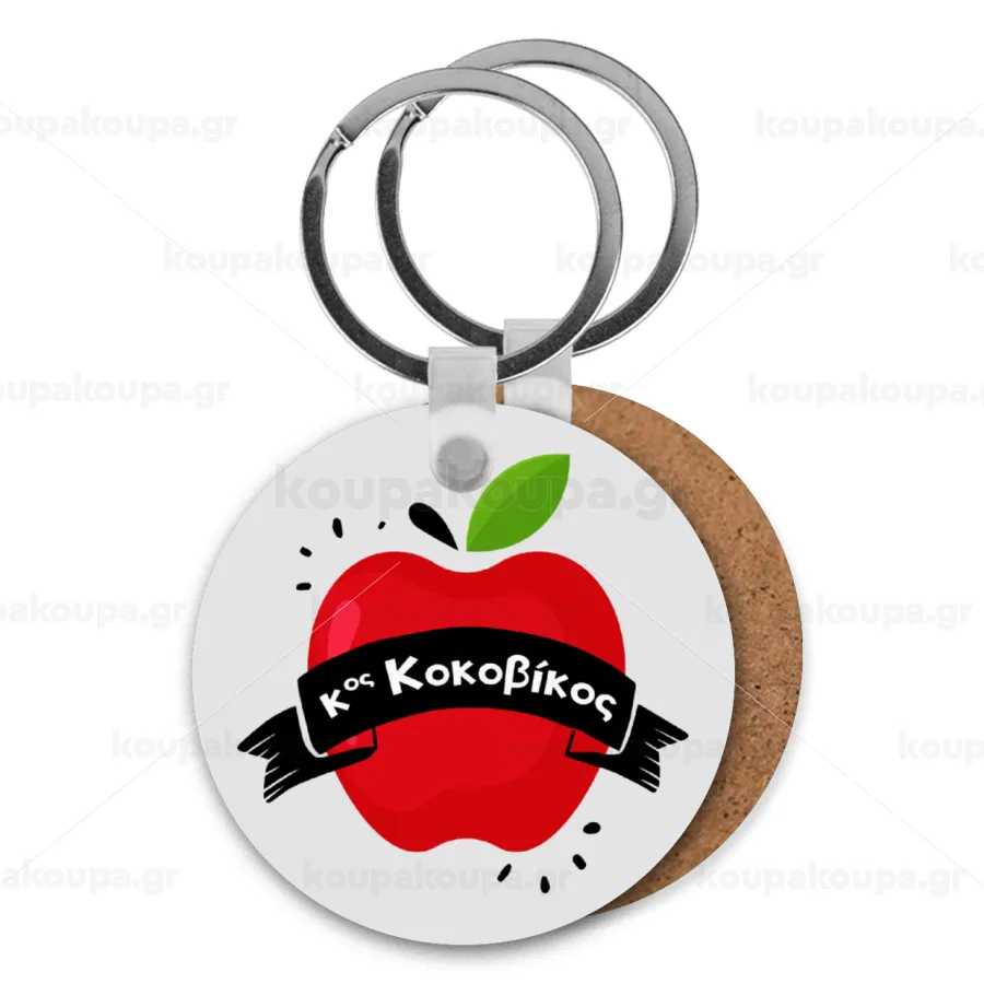 Αναμνηστικό Δώρο Δασκάλου Κόκκινο Μήλο, Μπρελόκ Ξύλινο στρογγυλό MDF Φ5cm