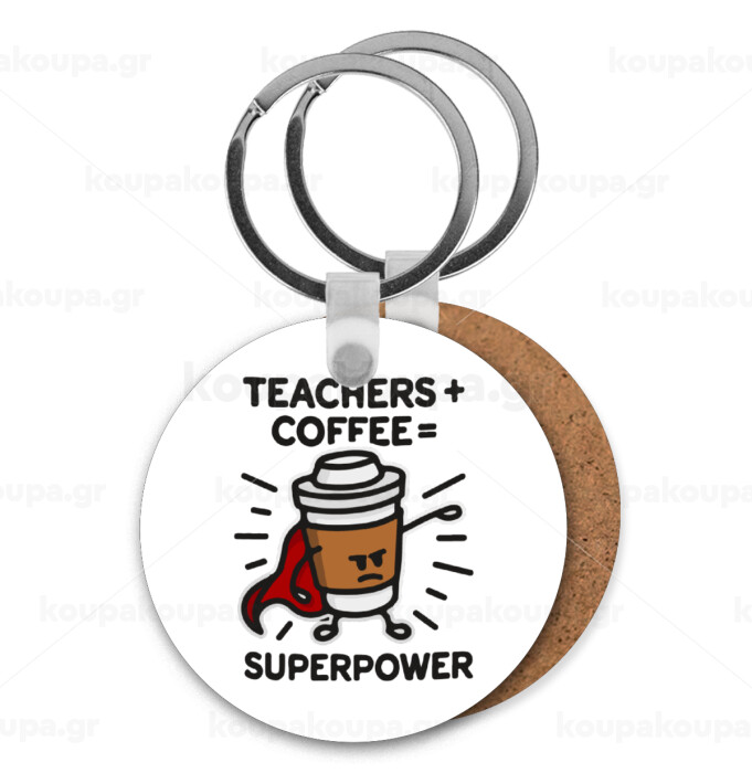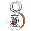 Teacher Coffee Super Power, Μπρελόκ Ξύλινο στρογγυλό MDF Φ5cm