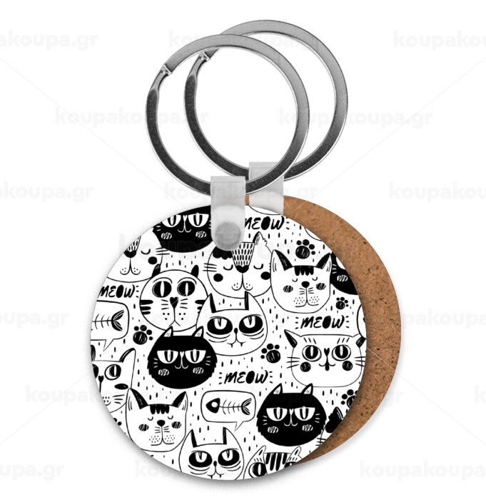 Γάτες, Μπρελόκ Ξύλινο στρογγυλό MDF Φ5cm