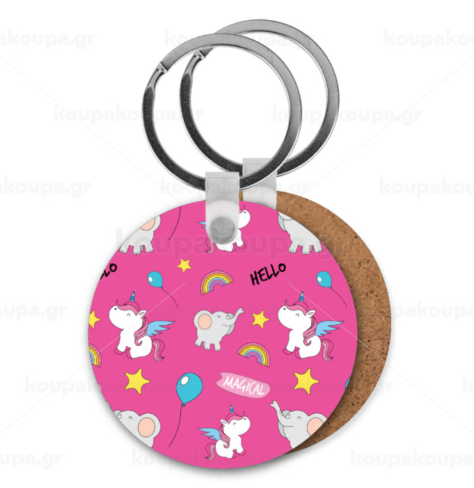 Happy Clouds Doodle, Μπρελόκ Ξύλινο στρογγυλό MDF Φ5cm