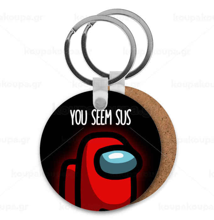 Among US, you seem sus, Μπρελόκ Ξύλινο στρογγυλό MDF Φ5cm