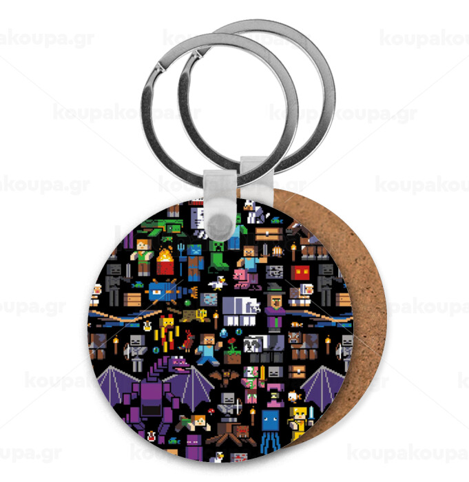 Minecraft Characters, Μπρελόκ Ξύλινο στρογγυλό MDF Φ5cm