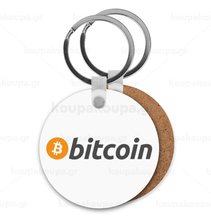Bitcoin Crypto, Μπρελόκ Ξύλινο στρογγυλό MDF Φ5cm