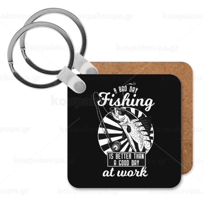 A bad day FISHING is better than a good day at work, Μπρελόκ Ξύλινο τετράγωνο MDF