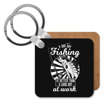 A bad day FISHING is better than a good day at work, Μπρελόκ Ξύλινο τετράγωνο MDF