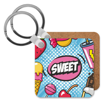 SWEET, Μπρελόκ Ξύλινο τετράγωνο MDF