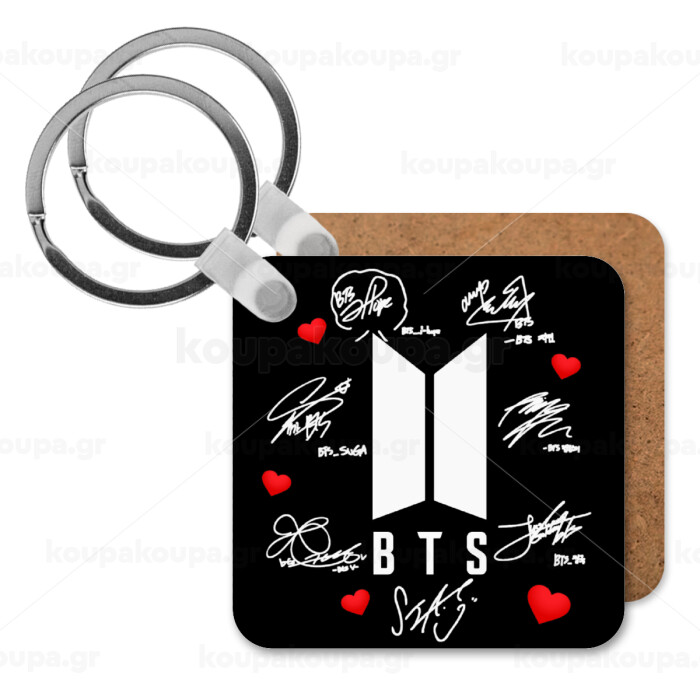 BTS signs, Μπρελόκ Ξύλινο τετράγωνο MDF