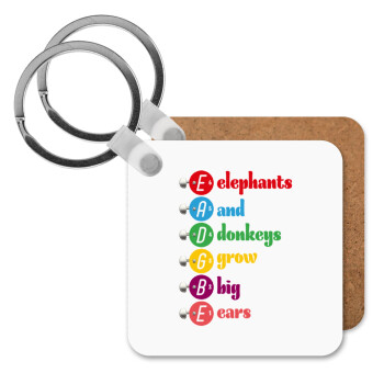 Elephants And Donkeys Grow Big Ears, Μπρελόκ Ξύλινο τετράγωνο MDF