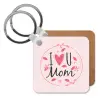 I Love you Mom pink, Μπρελόκ Ξύλινο τετράγωνο MDF