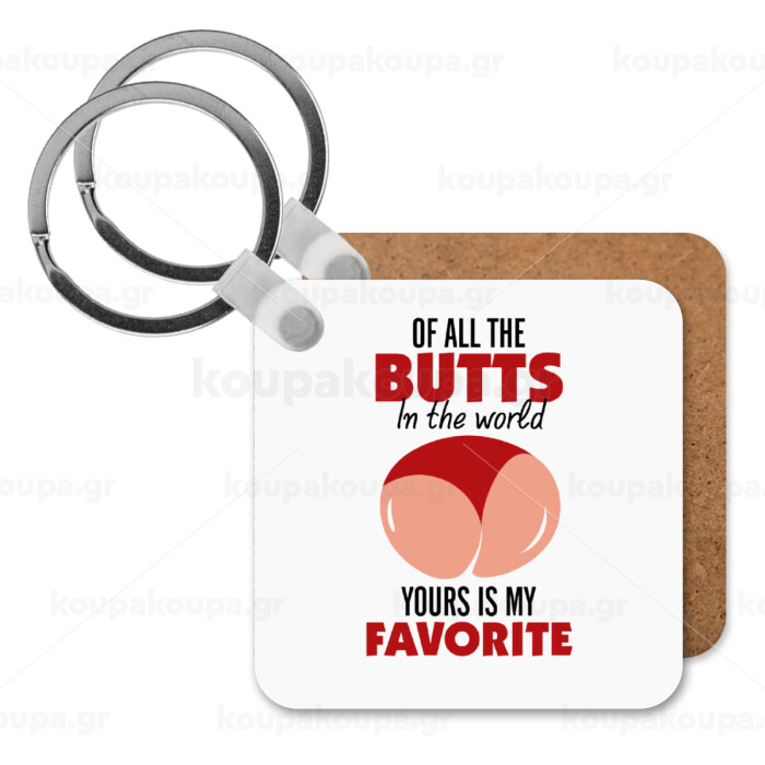 Of all the Butts in the world, your's is my favorite, Μπρελόκ Ξύλινο τετράγωνο MDF