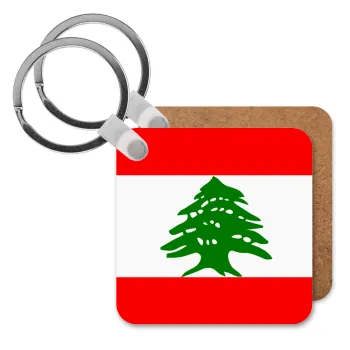 Lebanon flag, Μπρελόκ Ξύλινο τετράγωνο MDF