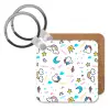Unicorn pattern white, Μπρελόκ Ξύλινο τετράγωνο MDF