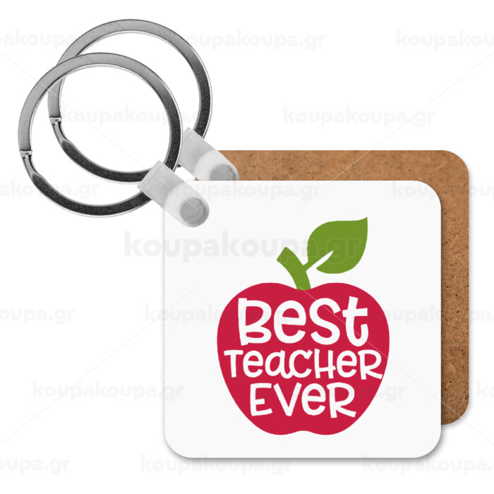 best teacher ever, apple!, Μπρελόκ Ξύλινο τετράγωνο MDF