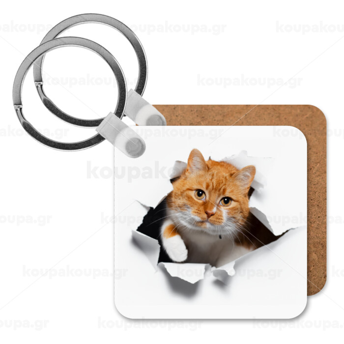 Cat cracked, Μπρελόκ Ξύλινο τετράγωνο MDF