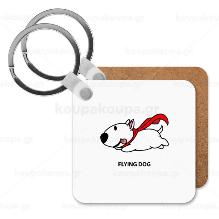 Flying DOG, Μπρελόκ Ξύλινο τετράγωνο MDF