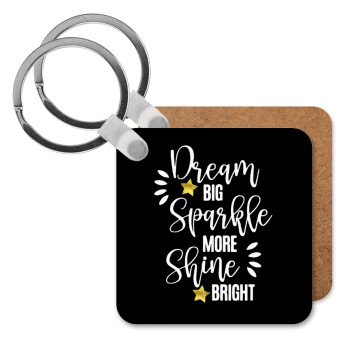 Dream big, Sparkle more, Shine bright, Μπρελόκ Ξύλινο τετράγωνο MDF