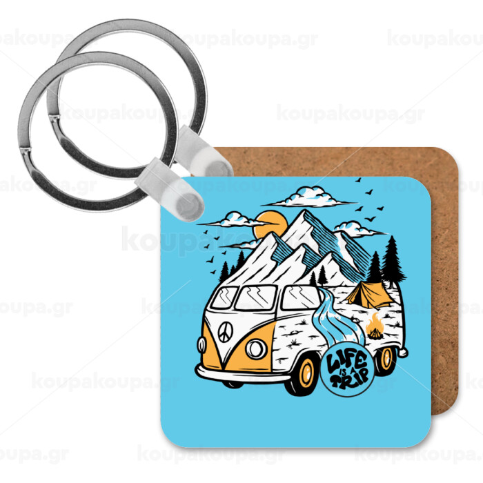Life is a trip, Μπρελόκ Ξύλινο τετράγωνο MDF