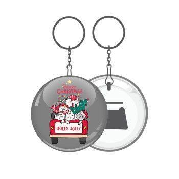 Merry Christmas cats in car, Μπρελόκ μεταλλικό 5cm με ανοιχτήρι