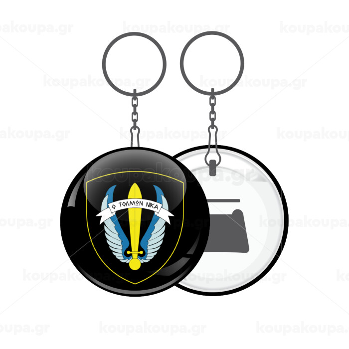 Έμβλημα Μονάδων Καταδρομών Ο Τολμων Νικα - Λοκ, Μπρελόκ μεταλλικό 5cm με ανοιχτήρι