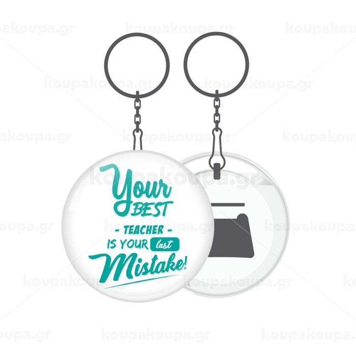 Your best teacher is your last mistake, Μπρελόκ μεταλλικό 5cm με ανοιχτήρι