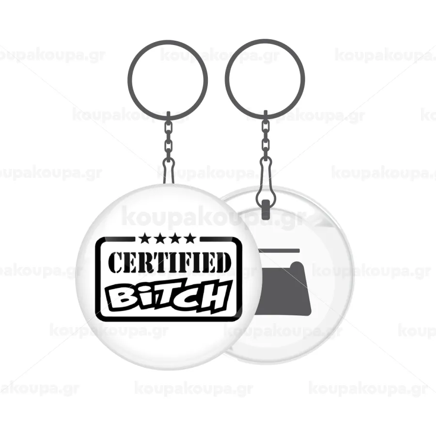 Certified Bitch, Μπρελόκ μεταλλικό 5cm με ανοιχτήρι