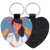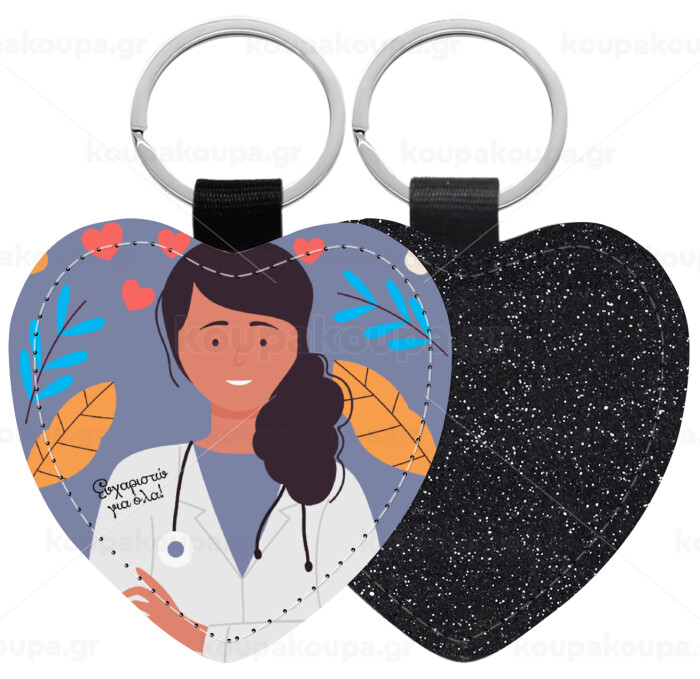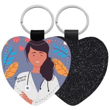 Ευχαριστώ για όλα γιατρέ, Μπρελόκ PU δερμάτινο glitter καρδιά ΜΑΥΡΟ
