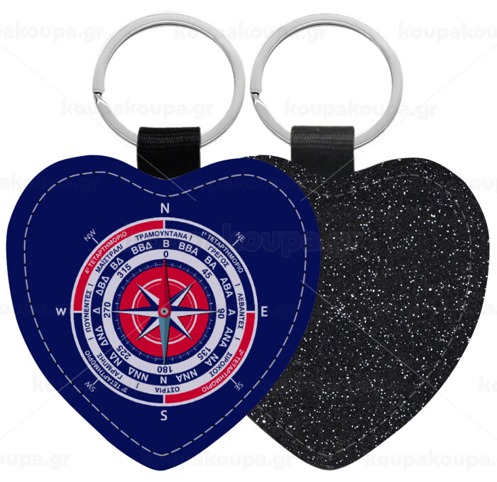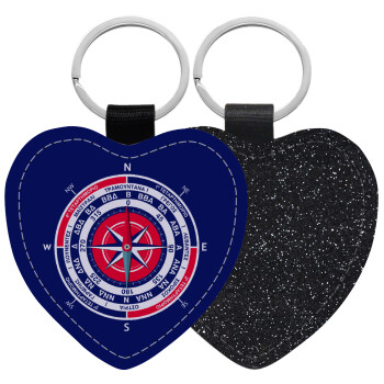 Ανεμολόγιο χάρτης πυξίδα ναυτικού, Μπρελόκ PU δερμάτινο glitter καρδιά ΜΑΥΡΟ