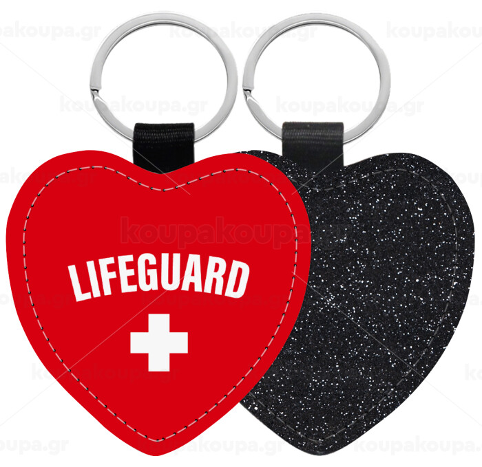 Lifeguard, Μπρελόκ PU δερμάτινο glitter καρδιά ΜΑΥΡΟ