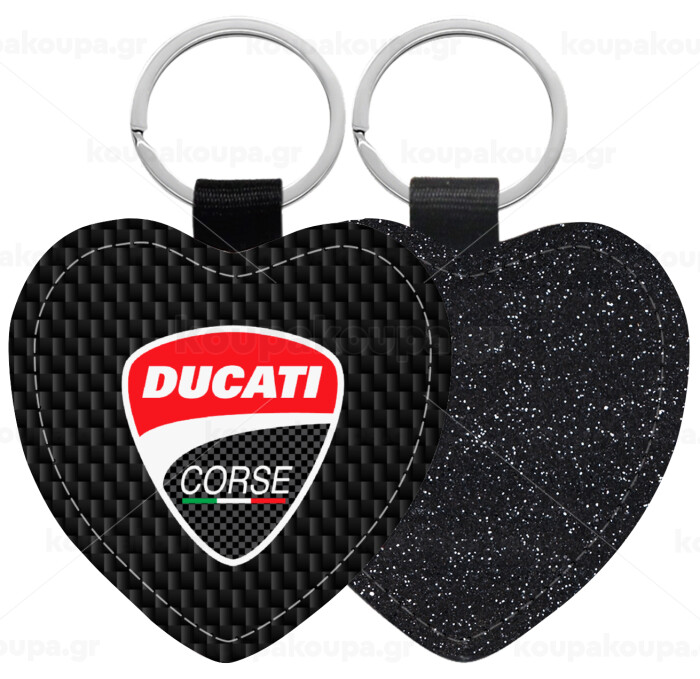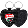 Ducati, Μπρελόκ PU δερμάτινο glitter καρδιά ΜΑΥΡΟ